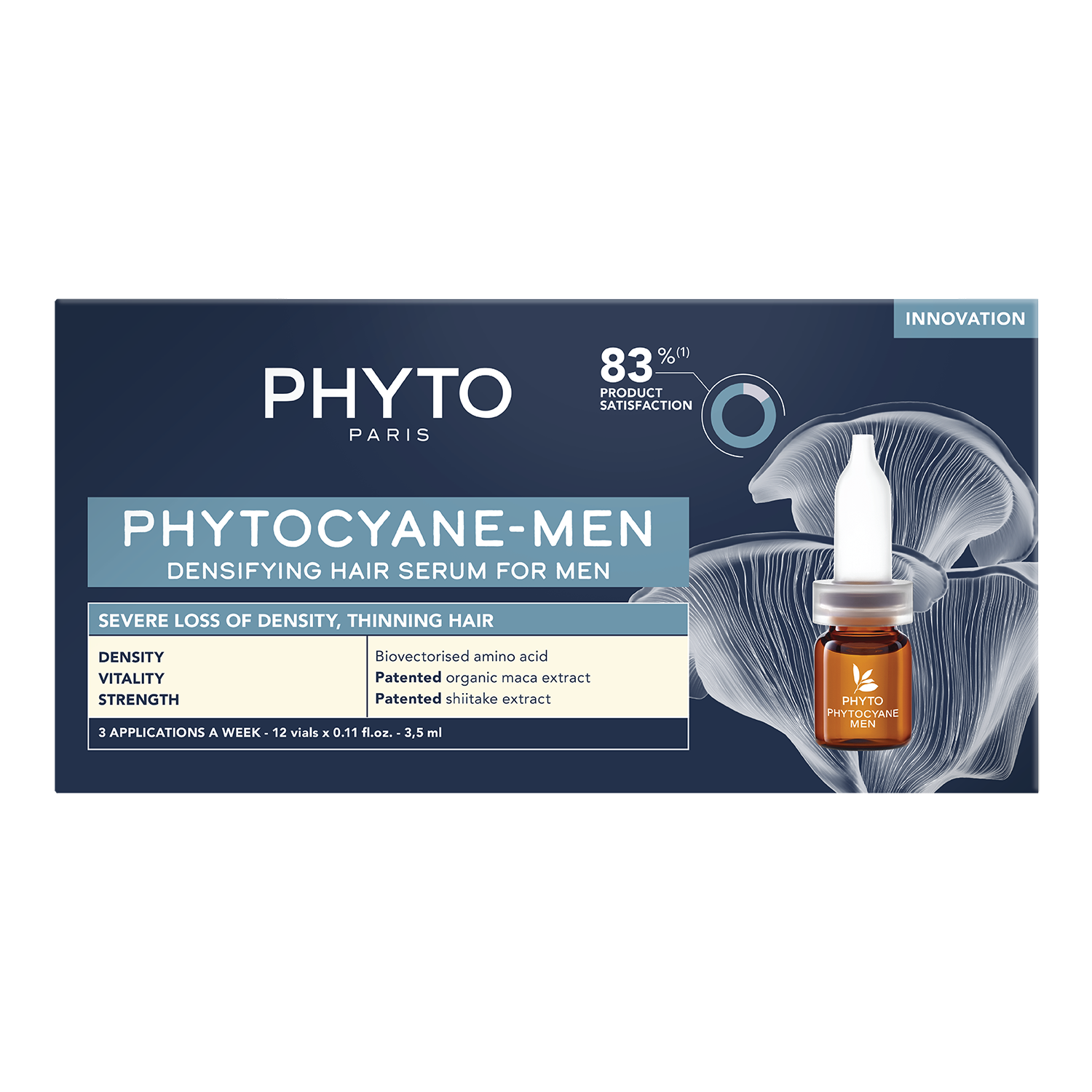PhytoCyane Erkekler için Yoğun Saç Bakım Serumu, içeriğiyle saç köklerini desteklemek ve sağlıklı saç oluşumuna katkıda bulunmak amacıyla geliştirilmiştir. %95 oranında doğal bileşenlerden oluşan formülde, patentli içerikler de yer alır. PhytoCyane Erkekler için Yoğun Saç Bakım Serumu, durulanma gerektirmeyen ve yağlı his bırakmayan bir formüle sahiptir.